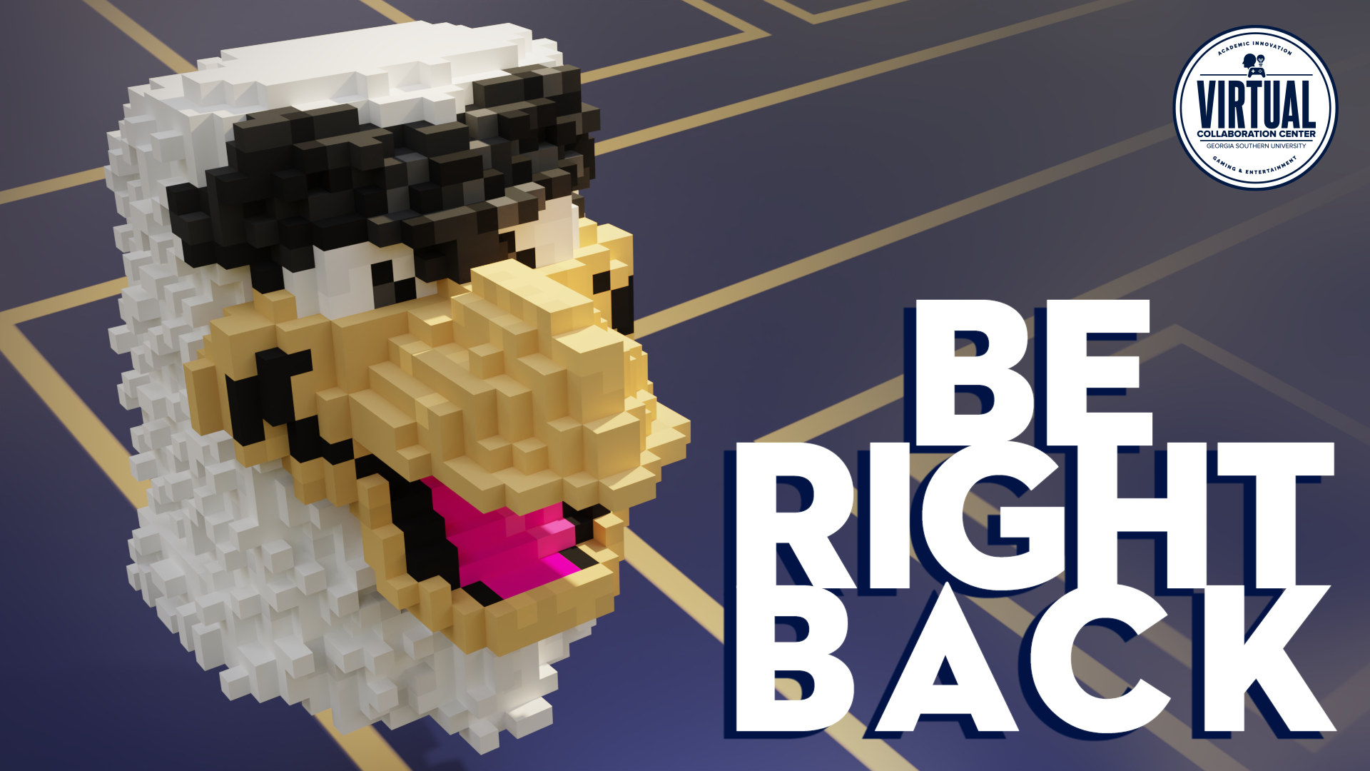 At the Virtual Collaboration Center, we needed a screensaver. So, I made and then animated a voxel form of Gus!